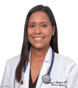 That was also where the future Dr. Michel became interested in medicine; her aunts and uncles were in the profession and served as role models. As a 12-year-old, she would read their medical textbooks out of curiosity.